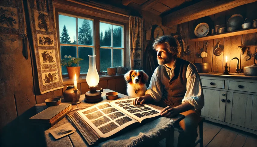 Trofast, en stor och stark schäfer, tittade på Johan med sina kloka ögon och verkade förstå att något stort var på gång. Tillsammans packade de nödvändigheter – kläder, proviant och några värdefulla kartor Johan fått tag i från en resande köpman. Det var en kall vårmorgon när de lämnade byn. De tog farväl av grannar och vänner, som undrade om de någonsin skulle se dem igen.